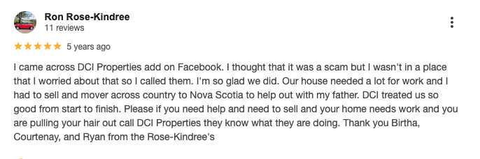 When Ron first came across a DCI Properties ad on Facebook, he admits he thought it might be a scam, but he decided to call anyway. After speaking with our team, he realized we were exactly what he needed: local buyers who could buy the home as-is, close in just a few weeks, and make the process simple and stress-free.
